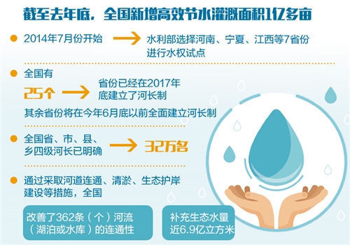 “目前,全國有25個省份已經(jīng)建立了河長制,其余省份將在今年6月底前全面建立河長制。全國省、市、縣、鄉(xiāng)四級河長已有32萬名。各級河長帶頭巡河履責(zé),開展專項行動,整治突出問題,健全管理機制,取得了明顯成效?!彼亢娱L辦主任祖雷鳴說,很多河流從“沒人管”到“有人管”、從“多頭管”到“統(tǒng)一管”、從“管不好”到“管得好”,實現(xiàn)了重大轉(zhuǎn)變。