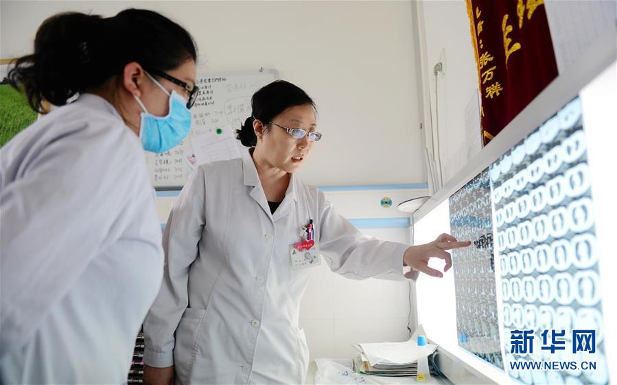 乞國艷在病房查看患者病情(2016年5月10日攝)。新華社記者王曉 攝
