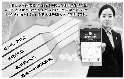 這樣的場景,在寧波兩級法院已經(jīng)不是個例。據(jù)統(tǒng)計,截至今年3月30日,寧波兩級法院已運用“寧波移動微法院”辦理案件18616件,其中送達4731件,證據(jù)交換120件次,開庭或詢問117次;調(diào)解撤訴2938件,執(zhí)行結(jié)案1073件。