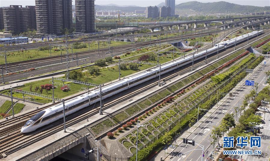 4月9日,一列“復興號”動車組列車行駛在京滬高鐵南京市境內。國家統(tǒng)計局4月17日發(fā)布數據,初步核算,一季度國內生產總值198783億元,按可比價格計算,同比增長6.8%。 新華社發(fā)(蘇陽 攝)