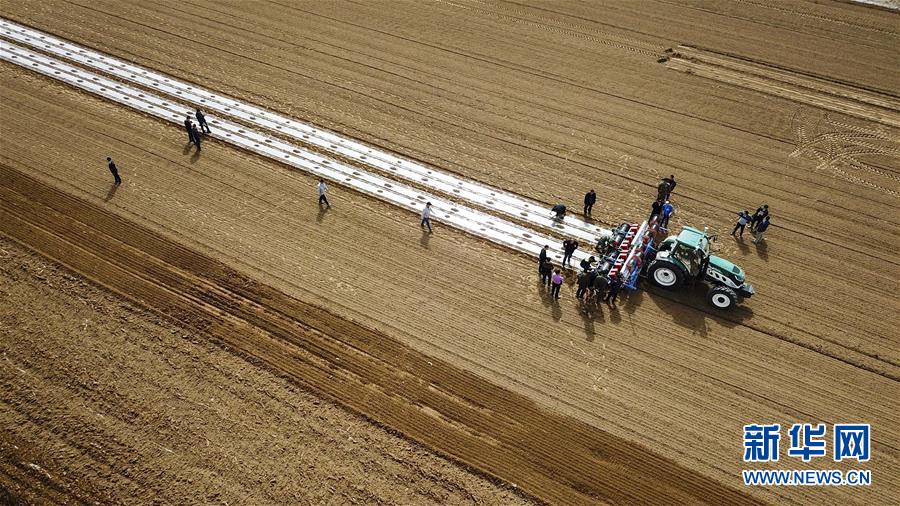 在新疆庫車縣牙哈鎮(zhèn)的一處棉田,“智能拖拉機”在進行播種作業(yè)(3月23日無人機拍攝)。國家統(tǒng)計局4月17日發(fā)布數據,初步核算,一季度國內生產總值198783億元,按可比價格計算,同比增長6.8%。 新華社記者 胡虎虎 攝