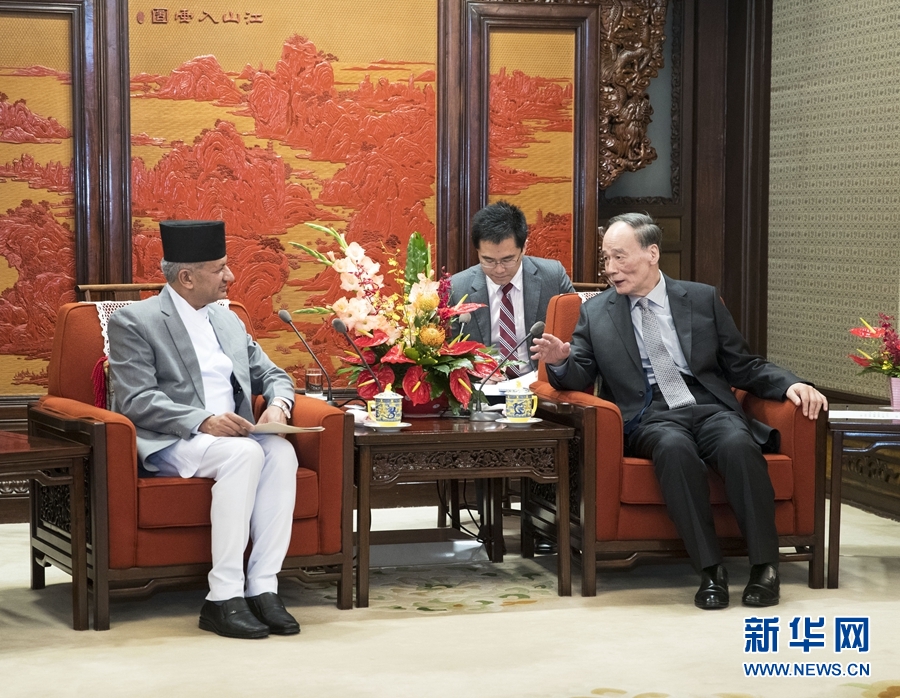 王岐山表示,中尼交往源遠(yuǎn)流長,是經(jīng)過歷史檢驗(yàn)的好鄰居、好朋友。在兩國領(lǐng)導(dǎo)人共同引領(lǐng)下,中尼關(guān)系持續(xù)健康發(fā)展,各領(lǐng)域合作穩(wěn)步推進(jìn)。中國改革開放和社會主義現(xiàn)代化建設(shè)中,一條很重要的經(jīng)驗(yàn)是處理好穩(wěn)定與發(fā)展的關(guān)系,穩(wěn)定是發(fā)展的前提,發(fā)展是穩(wěn)定的基礎(chǔ)。中方高興看到尼泊爾完成政治轉(zhuǎn)型,將國家建設(shè)重心轉(zhuǎn)移到發(fā)展經(jīng)濟(jì)上來,支持尼保持團(tuán)結(jié)穩(wěn)定,實(shí)現(xiàn)發(fā)展目標(biāo)。希望雙方共同落實(shí)好已有共識和協(xié)議,以“一帶一路”建設(shè)為契機(jī)拓展全方位合作,推動兩國關(guān)系發(fā)展到新高度。