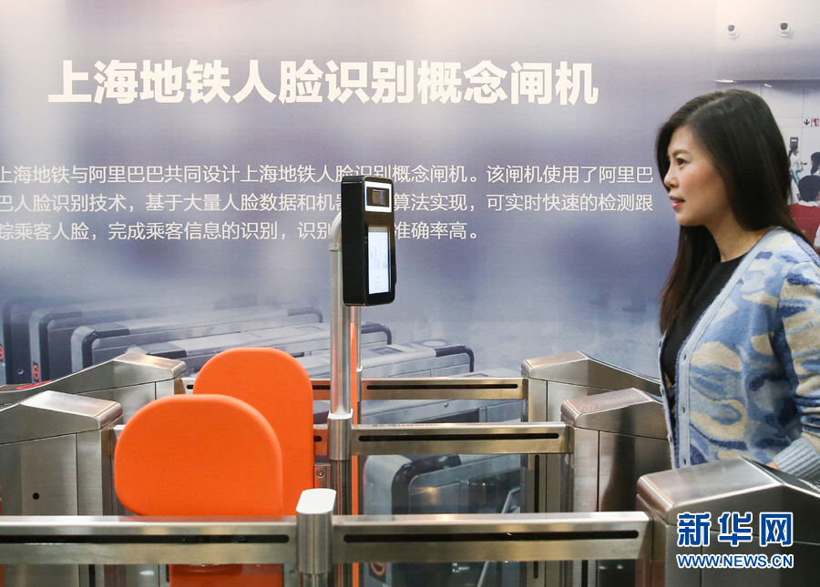 在上海申通地鐵集團(tuán)有限公司,工作人員在現(xiàn)場(chǎng)體驗(yàn)刷臉進(jìn)站技術(shù)(2017年12月5日攝)。新華社記者 丁汀 攝