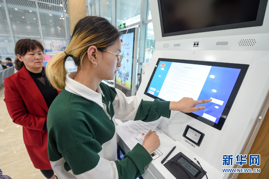 在南京市棲霞區(qū)商事登記服務(wù)大廳,市民用自動(dòng)終端機(jī)辦理業(yè)務(wù)(3月29日攝)。新華社記者 李博 攝