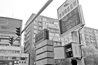 昨天下午,北青報(bào)記者來(lái)到黃莊路口西北角,周?chē)Q笛聲不斷,嘈雜一片。很快,西北角路口處懸掛的LED顯示屏上,就出現(xiàn)了違法鳴笛車(chē)輛的車(chē)牌號(hào)信息。