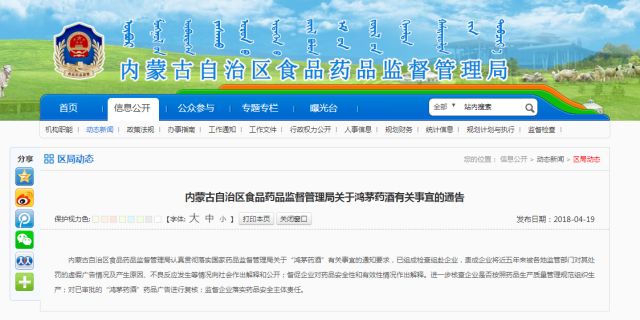 內蒙古自治區(qū)食品藥品監(jiān)督管理局認真貫徹落實國家藥品監(jiān)督管理局關于“鴻茅藥酒”有關事宜的通知要求,已組成檢查組赴企業(yè),責成企業(yè)將近五年來被各地監(jiān)管部門對其處罰的虛假廣告情況及產生原因、不良反應發(fā)生等情況向社會作出解釋和公開;督促企業(yè)對藥品安全性和有效性情況作出解釋。進一步核查企業(yè)是否按照藥品生產質量管理規(guī)范組織生產;對已審批的“鴻茅藥酒”藥品廣告進行復核;監(jiān)督企業(yè)落實藥品安全主體責任。