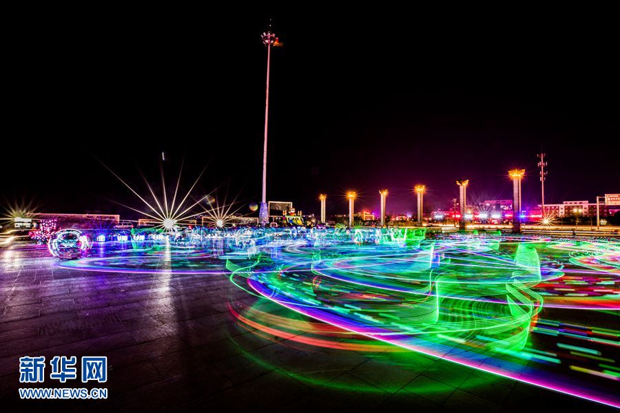 夜幕中的三賢廣場(chǎng),孩子們的玩具車留下五光十色的軌跡。中國(guó)雄安官網(wǎng)記者 王永康 攝