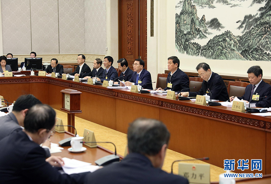 4月25日,十三屆全國人大常委會第二次會議舉行分組會議,審議人民陪審員法草案、英雄烈士保護法草案等。栗戰(zhàn)書委員長參加審議。 新華社記者劉衛(wèi)兵 攝