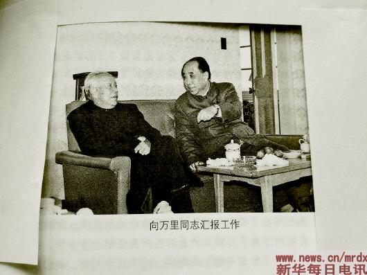 王郁昭向萬里同志(左)匯報工作。來源:《往事回眸與思考》一書
