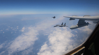 26日上午,人民空軍多型殲擊機(jī)、多型預(yù)警機(jī)、多型偵察機(jī)和轟—6K戰(zhàn)機(jī),從空軍多個機(jī)場起飛,成體系開展海上方向?qū)崙?zhàn)化軍事訓(xùn)練。轟—6K等多型戰(zhàn)機(jī)編隊飛越宮古海峽和巴士海峽,實施了“繞島巡航”訓(xùn)練課題。