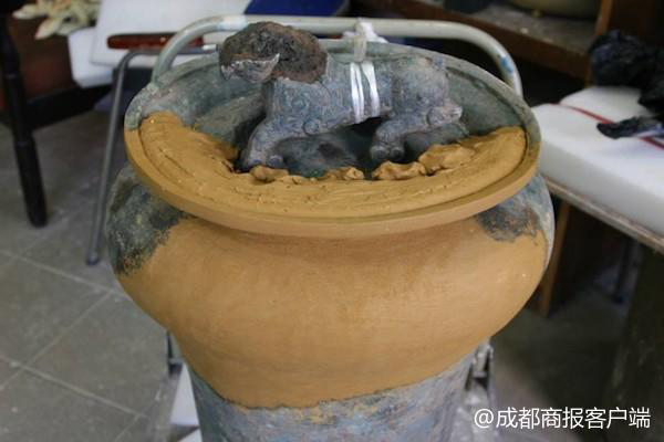 一年后,這批文物修復(fù)完畢,交付給旌陽區(qū)文管所?!翱吹叫迯?fù)后的文物,非常驚喜,尤其那兩包碎片,簡直一意外的驚喜?!编圎惤榻B。