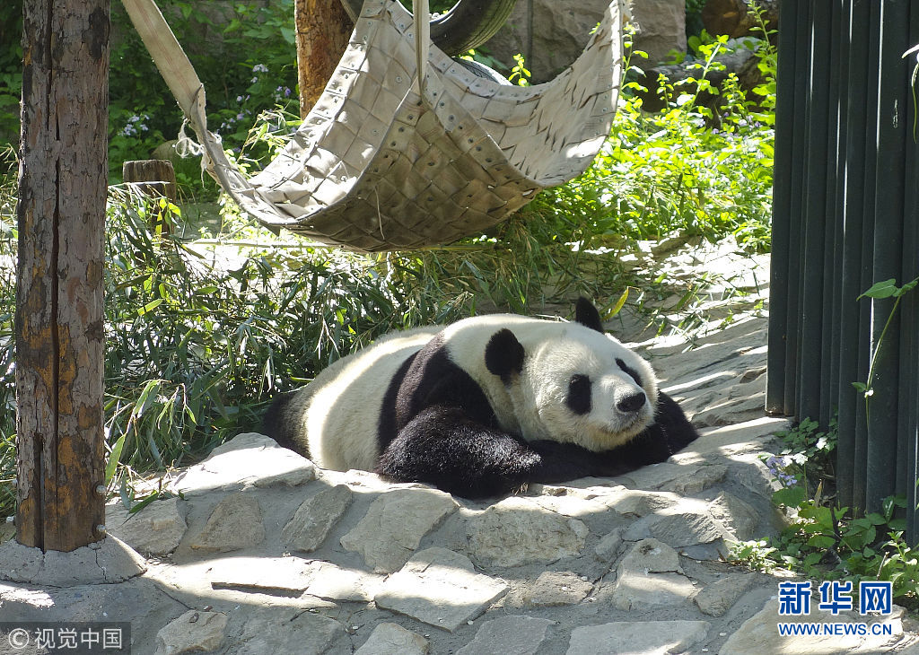 5月2日,在動(dòng)物園內(nèi),熊貓曬著太陽(yáng),時(shí)不時(shí)伸個(gè)懶腰,翻個(gè)身,笨拙的動(dòng)作盡顯萌態(tài)。(圖片來(lái)源:視覺(jué)中國(guó))