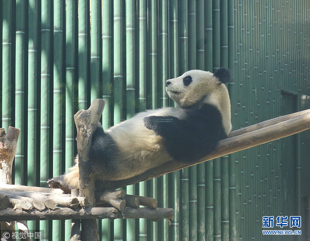 5月2日,在動物園內(nèi),熊貓曬著太陽,時不時伸個懶腰,翻個身,笨拙的動作盡顯萌態(tài)。(圖片來源:視覺中國)