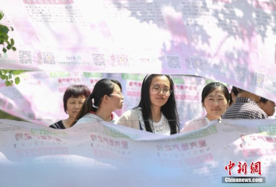 資料圖:相親會上,女孩觀看“征婚信息”。中新社記者 張勇 攝