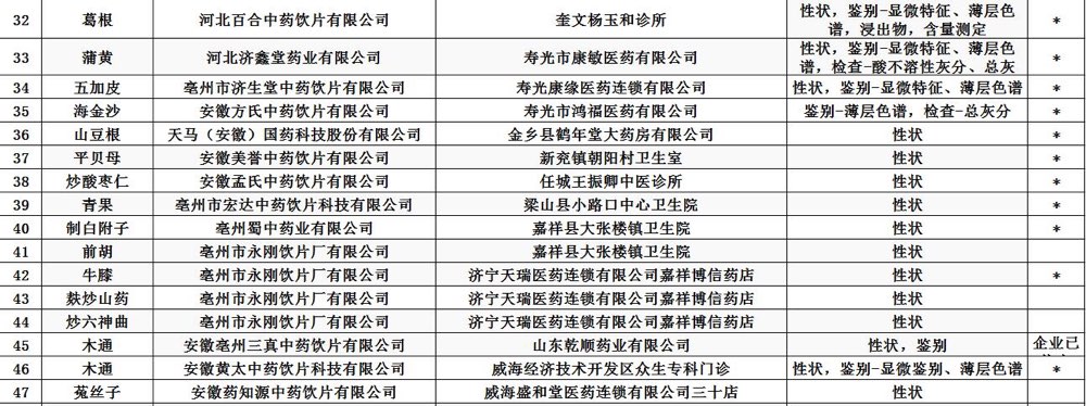 經(jīng)濱州市食品藥品檢驗檢測中心等14家藥品檢驗機構(gòu)檢驗,標(biāo)示為河北凱諾制藥有限公司等2家企業(yè)生產(chǎn)的2批次藥品,標(biāo)示為金芍堂中藥飲片有限公司等47家企業(yè)生產(chǎn)的70批次中藥飲片不合格。