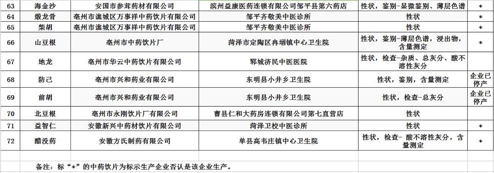 山東省食藥監(jiān)局今天發(fā)布第5期藥品、中藥飲片抽檢結(jié)果,72批次藥品質(zhì)量抽檢不合格。