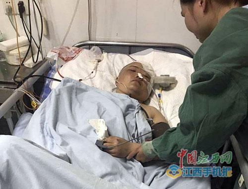 5月7日下午,江南都市報(bào)全媒體記者與劉慧芳的丈夫楊育華取得了聯(lián)系,他告訴說,他趕到現(xiàn)場(chǎng)時(shí),妻子已經(jīng)不省人事。妻子被送到都昌縣人民醫(yī)院,搶救后又轉(zhuǎn)到九江市的醫(yī)院,經(jīng)檢測(cè)發(fā)現(xiàn),妻子身體多處骨折,顱腦重型損傷左側(cè)腦部膜外出血,傷勢(shì)十分嚴(yán)重,當(dāng)晚就做了手術(shù)。醫(yī)生說,如果晚來一步,妻子可能就有生命危險(xiǎn)。