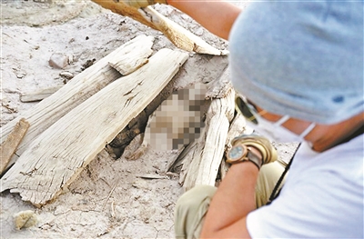 曾有驢友曬出在羅布泊擅揭古墓棺蓋的照片