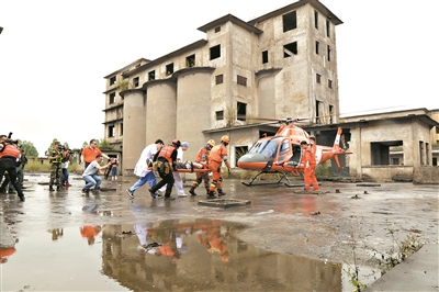 真人模擬遇險(xiǎn)人員救援行動(dòng)。