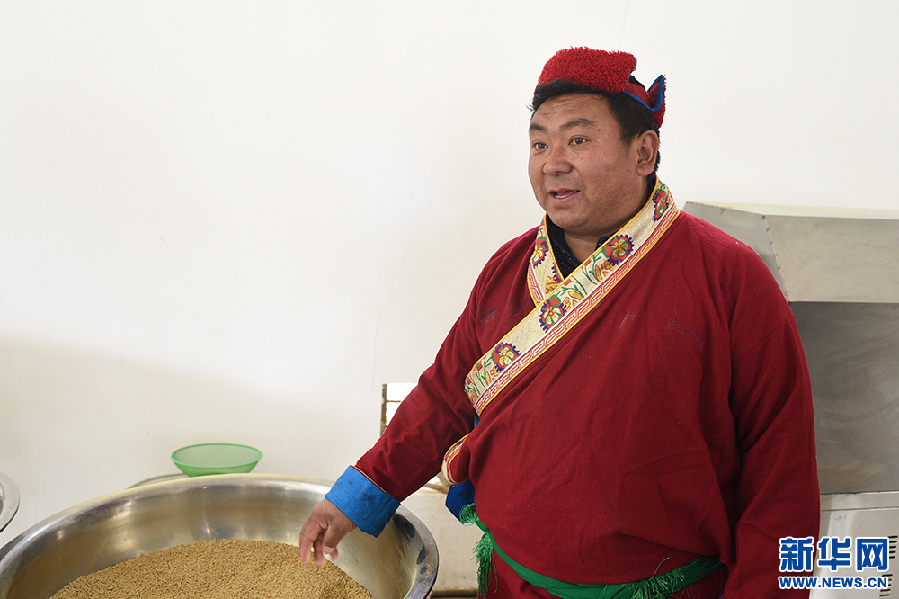 勒布溝特色產(chǎn)品農牧民專業(yè)合作社負責人群增次仁向記者介紹情況(5月13日 攝)。新華網(wǎng)記者 陳琳 攝