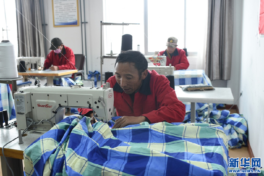 走出五保戶集中供養(yǎng)服務中心,對面就是錯那縣殘疾人就業(yè)中心。成立于2016年的殘疾人就業(yè)中心目前幫助16名建檔立卡貧困戶殘疾人解決了就業(yè)問題。每位殘疾人通過5個月的免費培訓就可以正式上崗,為一些學校制作校服,為各部門制作彩旗、藏裝、窗簾、救災帳篷、旅游特色禮品等。每人每月能拿到2000-3500元不等的工資。