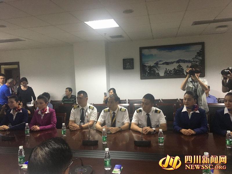 5月14晚8點30分,四川新聞網(wǎng)記者在成都市第一人民醫(yī)院見到了四川航空公司3U8633機(jī)組機(jī)長劉傳健及機(jī)組成員,記者發(fā)現(xiàn)機(jī)組成員狀態(tài)良好。在代表機(jī)組向媒體介紹相關(guān)情況時,機(jī)長劉傳健聲音洪亮,精神飽滿。劉傳健說,“感謝社會各界對機(jī)組的關(guān)心和厚愛。今天發(fā)生的這件事應(yīng)該是很罕見的,但是經(jīng)過機(jī)組的共同努力,做到人機(jī)安全,保障了我們所有的旅客安全,我和我的機(jī)組是非常榮幸的。”