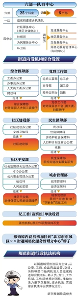 街道“大部制”改革怎么改?東城區(qū)委常委、組織部長王清旺介紹,原來一個街道有25個科室,力量比較分散,這次調(diào)整后,“六部一隊四中心”,整合力量,使工作力量聚焦到公共服務(wù)、公共管理和公共安全上來。