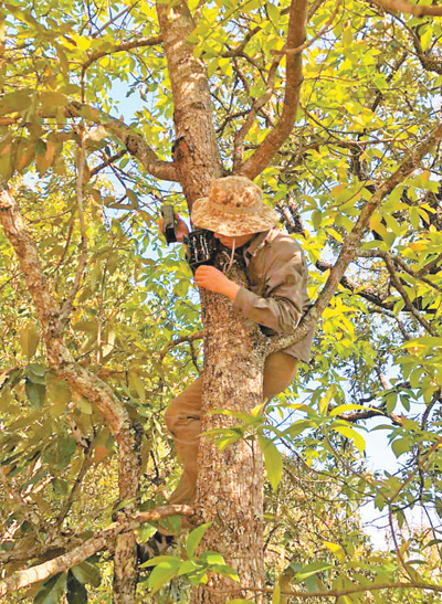 中國(guó)科學(xué)院昆明動(dòng)物研究所研究人員在安放紅外相機(jī),進(jìn)行鳥(niǎo)類(lèi)監(jiān)測(cè)。中國(guó)科學(xué)院昆明動(dòng)物研究所鳥(niǎo)類(lèi)學(xué)組供圖