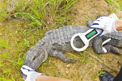 芯片也被稱為電子標(biāo)識(shí)器。電子標(biāo)識(shí)器注入鱷魚(yú)尾部皮下,對(duì)揚(yáng)子鱷的健康沒(méi)有影響。研究人員可以通過(guò)專門(mén)的閱讀器讀出其內(nèi)數(shù)碼,方便日后辨識(shí)身份。汪仁平說(shuō):“電子芯片呈米粒形狀,長(zhǎng)約1厘米,芯片上標(biāo)記著它的個(gè)體信息,如身高、體重、年齡等,一旦這條鱷魚(yú)再次被捕捉,通過(guò)閱讀器能迅速確定它的身份?!?/p>