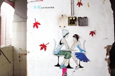 鄭州一處拆遷房屋墻壁上的貼畫,顯示出原主人對幸福的憧憬。記者 洪波 攝影