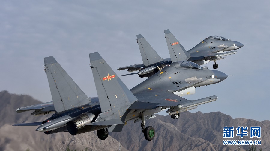 參加空軍“紅劍-2018”體系對(duì)抗演習(xí)的戰(zhàn)機(jī)聽(tīng)令起飛(5月24日攝)。新華社發(fā)(溫志軍攝)