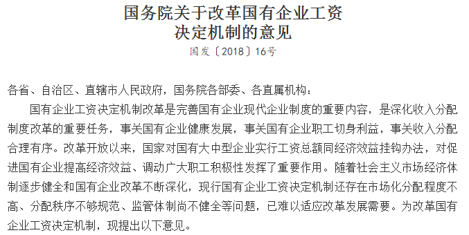 25日,國(guó)務(wù)院正式發(fā)布《關(guān)于改革國(guó)有企業(yè)工資決定機(jī)制的意見》,一份影響著近4千萬(wàn)國(guó)企員工工資的重磅文件正式面世!