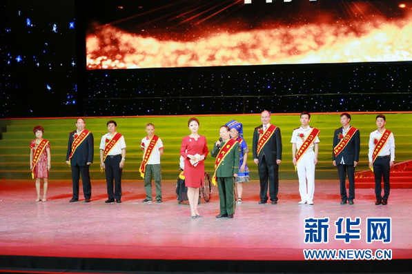 “我推薦我評(píng)議身邊好人”活動(dòng)自2008年5月啟動(dòng)至今已整整十周年。圖為“當(dāng)代雷鋒”、武警新疆總隊(duì)醫(yī)院名譽(yù)院長(zhǎng)莊仕華為十年來(lái)每年的中國(guó)好人代表佩戴榮譽(yù)綬帶,并發(fā)表感言。 新華網(wǎng) 楊喜龍攝