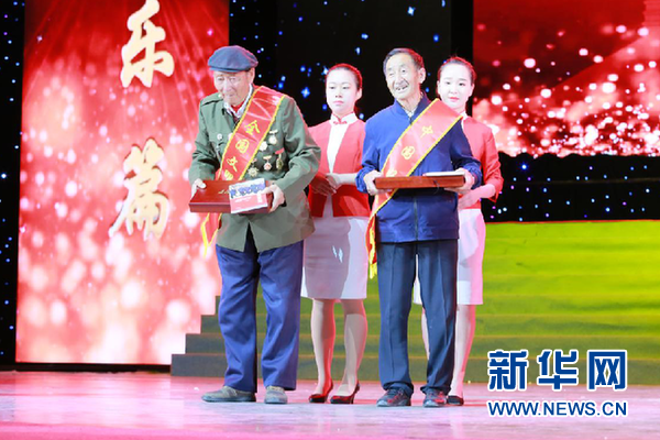 嘉賓為張延波(左)頒發(fā)道德傳家寶。 新華網(wǎng) 楊喜龍攝
