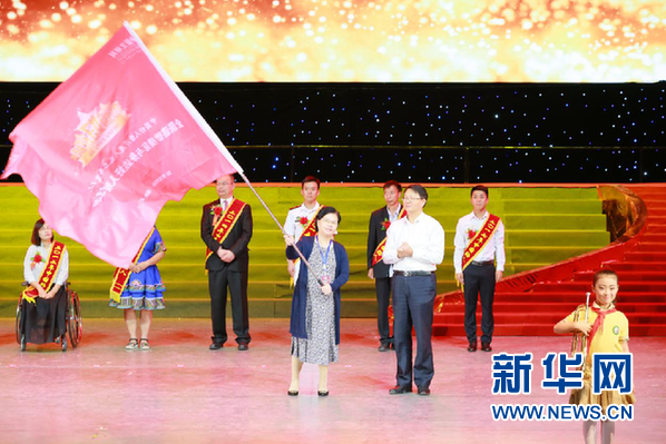“中國(guó)好人榜”主題旗幟交接儀式。新華網(wǎng) 楊喜龍攝