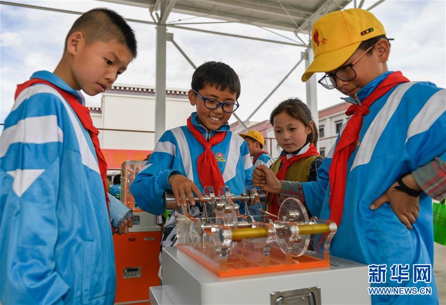 幾名學生在拉薩市流動科技館巡展活動現(xiàn)場體驗科學小實驗(5月24日攝)。 新華社記者 劉東君 攝
