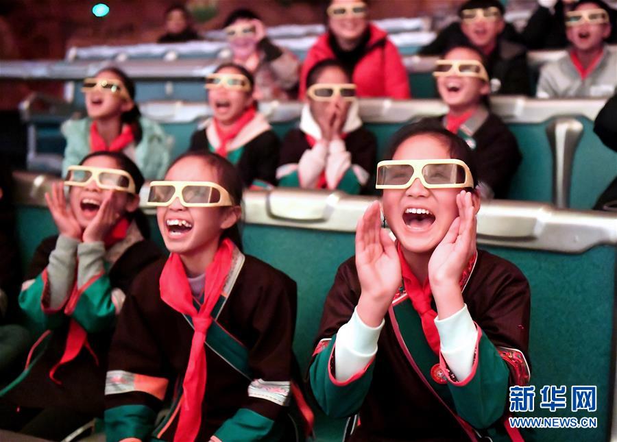 在廣西柳州市景行小學柳東校區(qū),來自三江侗族自治縣和融安縣大山里的留守兒童觀看3D動畫片(1月4日攝)。當日,柳州市舉行關愛留守兒童城市圓夢活動。新華社發(fā)(黎寒池 攝)