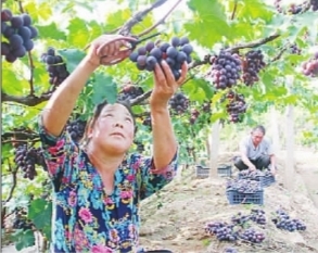 陽原縣東城鄉(xiāng)五馬坊葡萄大豐收,農(nóng)戶正在采摘葡萄。仝輝 攝/光明圖片