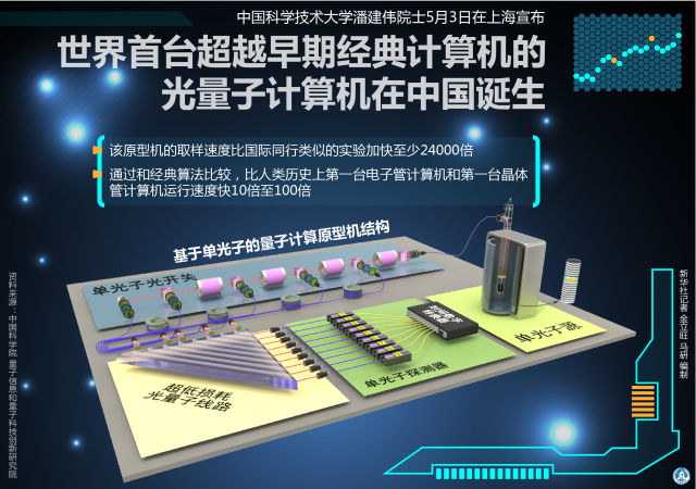 2017年5月3日,世界首臺(tái)超越早期經(jīng)典計(jì)算機(jī)的光量子計(jì)算機(jī)在中國(guó)誕生 (新華社記者 金立旺 馬研 編制)