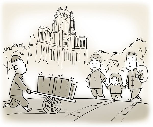 每天推著水車(chē)到河邊取水,然后挨家挨戶送水。