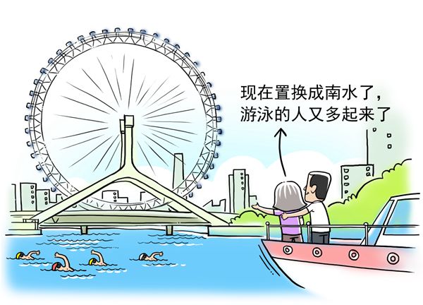 現(xiàn)在置換成南水,游泳的人又多起來(lái)了。