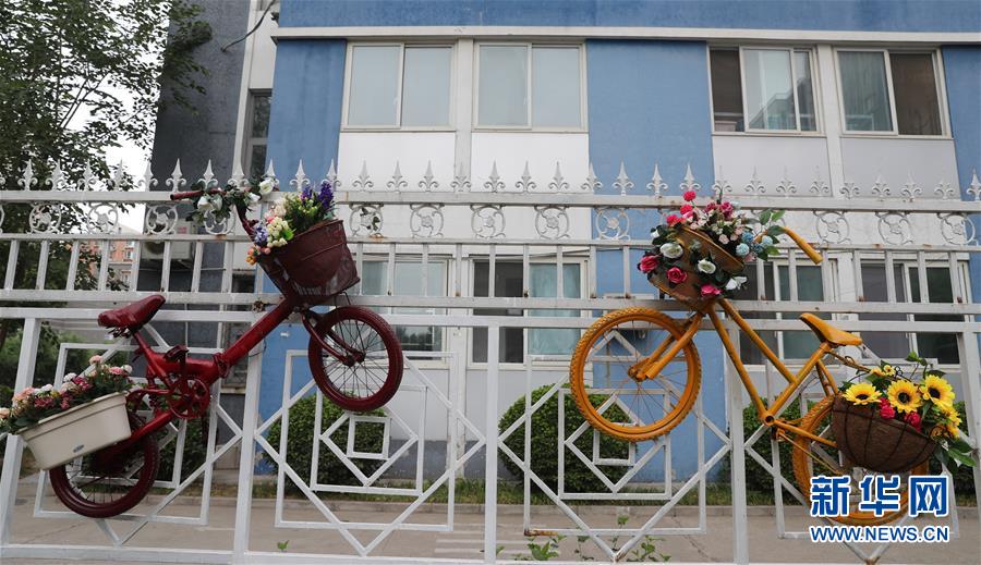 當(dāng)日,北京市豐臺區(qū)花鄉(xiāng)天倫錦城社區(qū)的居民利用社區(qū)內(nèi)廢棄的自行車,進(jìn)行噴漆、裝上花籃等改造,把這些廢舊自行車變成裝飾品,自己動手裝點社區(qū)環(huán)境。