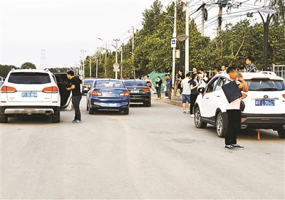 北青報(bào)記者在通胡路宋梁路交叉路口探訪(fǎng)看到,從東夏園地鐵站一出門(mén),不少“黑車(chē)”司機(jī)招呼乘客去往燕郊等地。附近等待“拉活兒”的車(chē)輛也停滿(mǎn)了路邊的各個(gè)角落,而路上外埠車(chē)通過(guò)也成為主流。