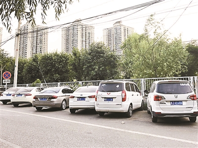北青報(bào)記者隨后來(lái)到了位于該停車(chē)場(chǎng)外的一條小路邊,發(fā)現(xiàn)這條路邊停滿(mǎn)了機(jī)動(dòng)車(chē),其中有70%左右的車(chē)都是外地號(hào)牌車(chē)輛。