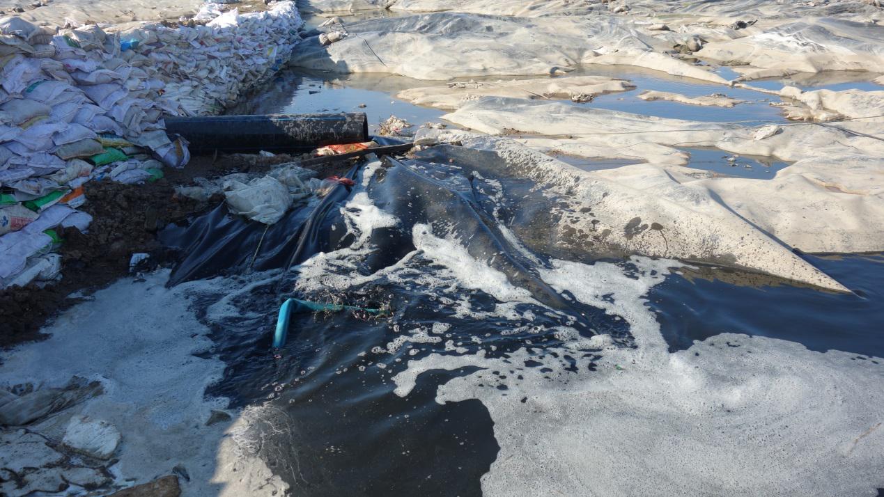 哈爾濱市香坊區(qū)向陽垃圾填埋場大量滲出濾液。(生態(tài)環(huán)境部供圖)