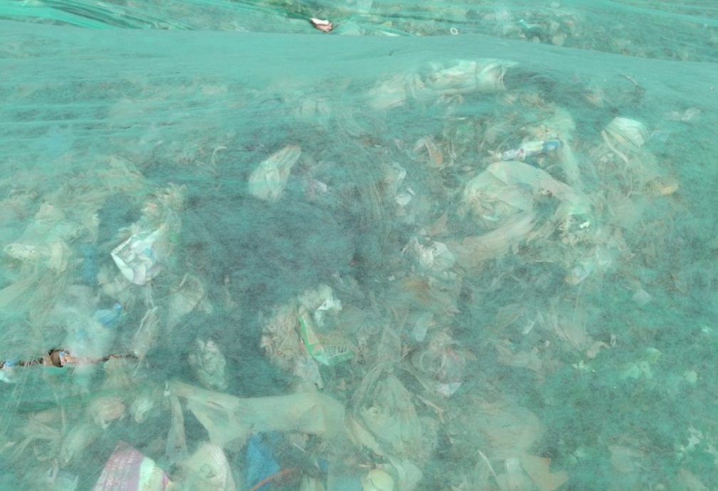 圖5:三善堂臨時垃圾堆場綠化膜下的垃圾清晰可見