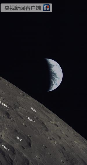 ?。〝z于2018年6月8日13時29分,拍攝到的月面影像位于月球背面北半球彼得羅帕夫洛夫斯基M環(huán)形坑附近。從拍攝到的地球圖像上可以清晰地分辨出波斯灣、紅海、地中海和阿拉伯半島等區(qū)域)
