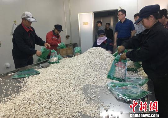 清水縣白沙鄉(xiāng)溫泉村的生物科技有限責任公司為當?shù)剞r(nóng)民免費提供技術(shù)指導(dǎo)和種子化肥,既解決銷售渠道問題,又降低種植風險,公司安置貧困戶就業(yè)近20人。圖為當?shù)刎毨粽诎b中藥材?!堟?攝