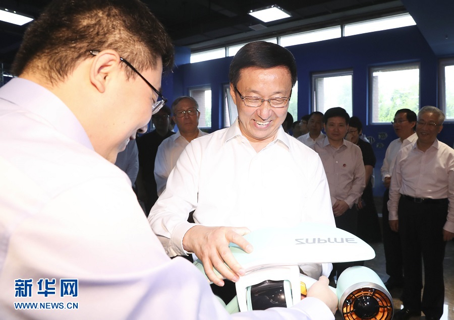 6月19日,中共中央政治局常委、國務(wù)院副總理韓正在天津市調(diào)研京津冀協(xié)同發(fā)展工作。這是韓正考察天津深之藍(lán)水下新視界科技有限公司。新華社記者 丁林 攝
