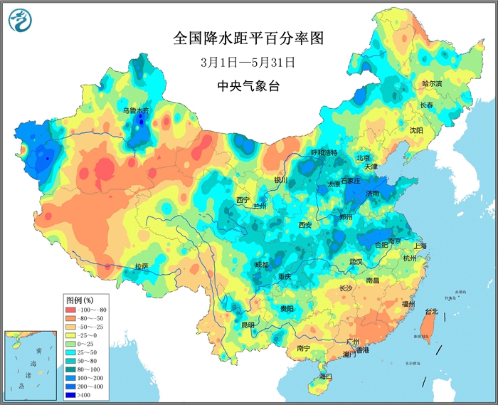 原因主要還是西太平洋副熱帶高壓系統(tǒng)強(qiáng)度偏強(qiáng),面積偏大,脊線位置偏北、西伸脊點(diǎn)位置偏西,來(lái)自西太平洋的暖濕氣流向我國(guó)南方輸送水汽進(jìn)程受阻,南方降水偏少,梅雨進(jìn)程推遲。